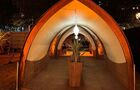 Das Strawboid-Zelt ist ein CO2-neutrales Zelt und besteht komplett aus Holz.