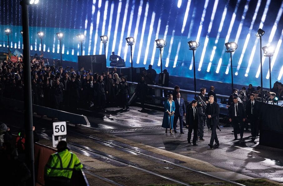 Eine spektakuläre Live-Übertragung mit nicht weniger als 2.000 Freiwilligen, die die Pont Rouge in Luxemburg-Stadt überquerten, wo die Bevölkerung Luxemburgs durch 8 fahrende Straßenbahnen präsentiert wurde – kraftvoll, einigend und auf dem Bildschirm ...
