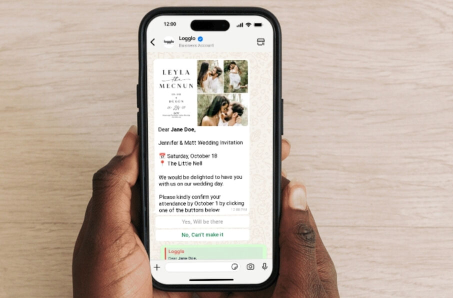 Logglo macht die Zusage Ihrer Hochzeitseinladungen für Sie mühelos und für Ihre Gäste einfach. Senden Sie schöne, moderne Einladungen direkt an WhatsApp und sehen Sie zu, wie die Antworten eintrudeln. Wir kümmern uns um die Nachverfolgung und Erinnerungen, damit Sie sich nicht darum kümmern müssen – keine Tabellenkalkulationen, kein Stress.
