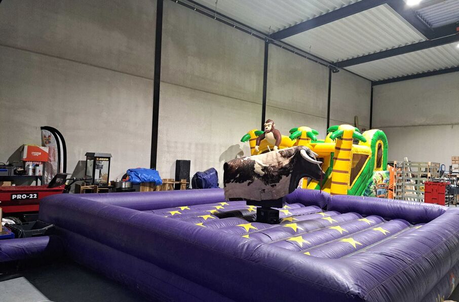 Zusätzlich zu unserem Angebot an Hüpfburgen vermieten wir auch Popcorn- und Zuckerwattemaschinen mit allem notwendigen Zubehör, und für diejenigen, die das gewisse Extra suchen, einen professionellen Rodeo-Bullen .