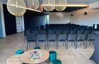 Der Raum ist flexibel und eignet sich für verschiedene Bestuhlungsvarianten, von Theater- und Besprechungsräumen bis hin zu Einzeltischen oder offenen Workshops. Dank der offenen Gestaltung und der angenehmen Atmosphäre lässt sich mühelos ein professionelles und gleichzeitig einladendes Umfeld schaffen.