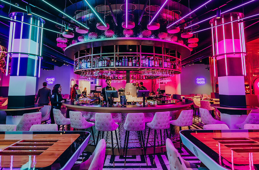 Das All Out Amsterdam ist der neue Hotspot für (Firmen-)Events in Amsterdam. Dieses revolutionäre Do-it-yourself-Gastronomiekonzept ist der perfekte Ort, um zusammenzukommen, aktiv zu sein und köstliche Cocktails, Snacks oder Walking Dinner zu genießen. Von Karaoke-Räumen über Darts, Shuffleboard und eine LED-Diskokugel-Grube ist für jeden etwas dabei! Mit seinem lebendigen und auffälligen Design lädt der Veranstaltungsort dazu ein, in eine Welt voller Farben, Kreativität und Spaß einzutauchen.