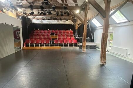 Wir bieten einen Theatersaal mit Tribüne, ein Foyer mit Bar, eine Garderobe und einen angrenzenden privaten Garten. Zur Standardausstattung gehören Fernseher, Theatertechnik und -beleuchtung, ein Projektor mit Leinwand, eine Blackbox-Option, ein Flipchart, ein Klavier und WLAN – alles im Mietpreis inbegriffen.