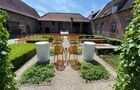 Darüber hinaus bietet der Veranstaltungsort zahlreiche Möglichkeiten im Innen- und Außenbereich. Die grüne Umgebung und der idyllische Innenhof bilden die perfekte Kulisse für Empfänge oder Zeremonien unter freiem Himmel. Im Inneren stehen flexible Räume zur Verfügung, die sich an die Größe und Art der Veranstaltung anpassen lassen.