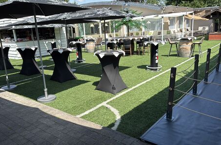 Ein absolutes Highlight ist die großzügige Terrasse mit einer Kapazität von bis zu 500 Personen, die an drei großen Teichen liegt. Diese außergewöhnliche Außenanlage bietet eine beeindruckende Kulisse für Empfänge unter freiem Himmel, Dinner im Gehen und Firmenveranstaltungen – fernab von Hektik und Trubel.