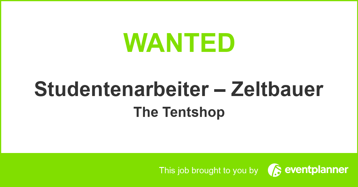Wir suchen studentische Hilfskräfte für Juni, Juli, August und September, die beim Auf- und Abbau von Zelten auf Festivals und Veranstaltungen helfen.