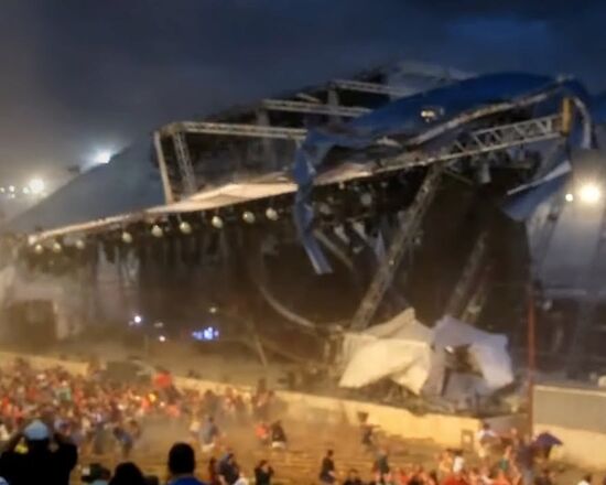 Als sich ein Unwetter näherte, stürzte das 19 Meter hohe Bühnendach – Teil einer 32 Tonnen schweren temporären Konstruktion – durch plötzliche, heftige Winde ein. Innerhalb weniger Sekunden krachten Stahlträger und Traversen auf die Zuschauermenge. Sieben Menschen starben, und mehr als 100 wurden verletzt.