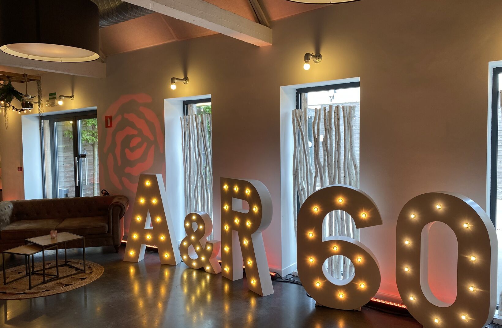 Zum 60. Hochzeitstag von André und Rachel haben wir dieses Setup mit einer Kombination aus klassischen Sitzgelegenheiten (Crossbacks und runde Tische), Stehtischen mit Barhockern und einer Samtlounge ausgestattet. Rose war die Zielfarbe.