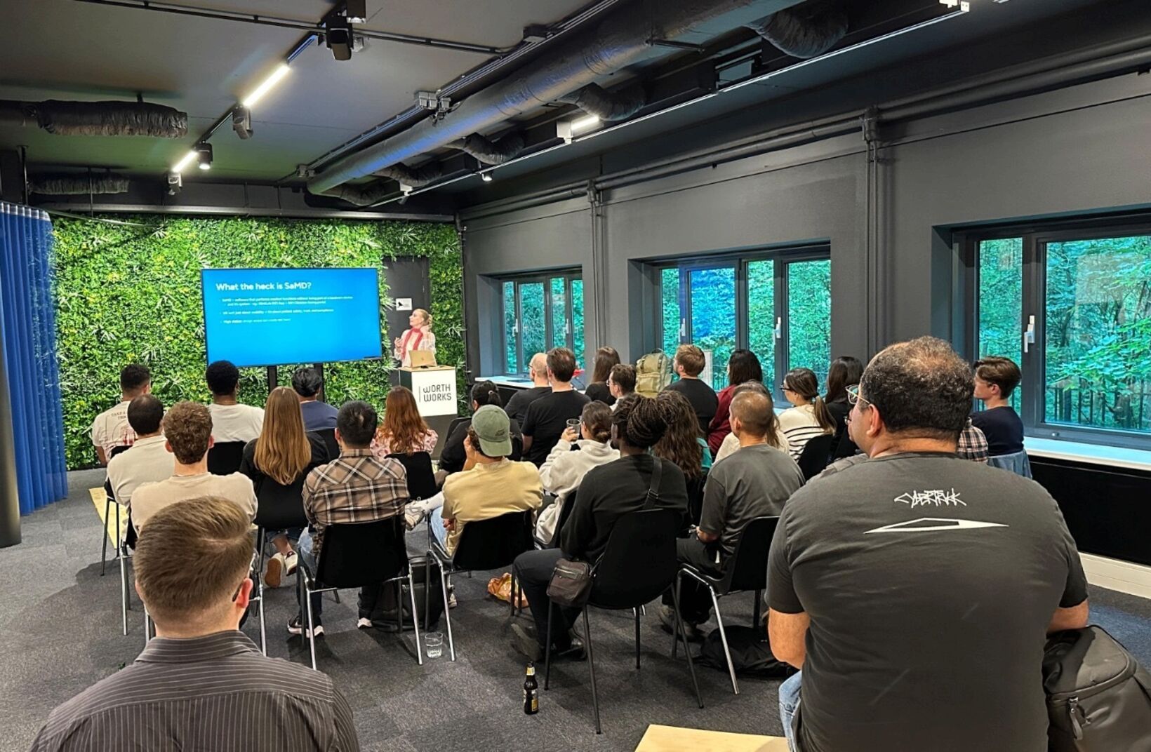 Am 18. September 2025 lud Worth Works die Lean-UX-Community zum vierten Thirsty Thursday-Treffen in unsere Räumlichkeiten ein. Der Abend begann mit Pizza und Getränken im Barbereich, bevor sich alle in den Hauptsaal begaben, um drei „Tiny Talks“ über datengesteuertes Design, Health-Tech-UX und Barrierefreiheit zu hören.