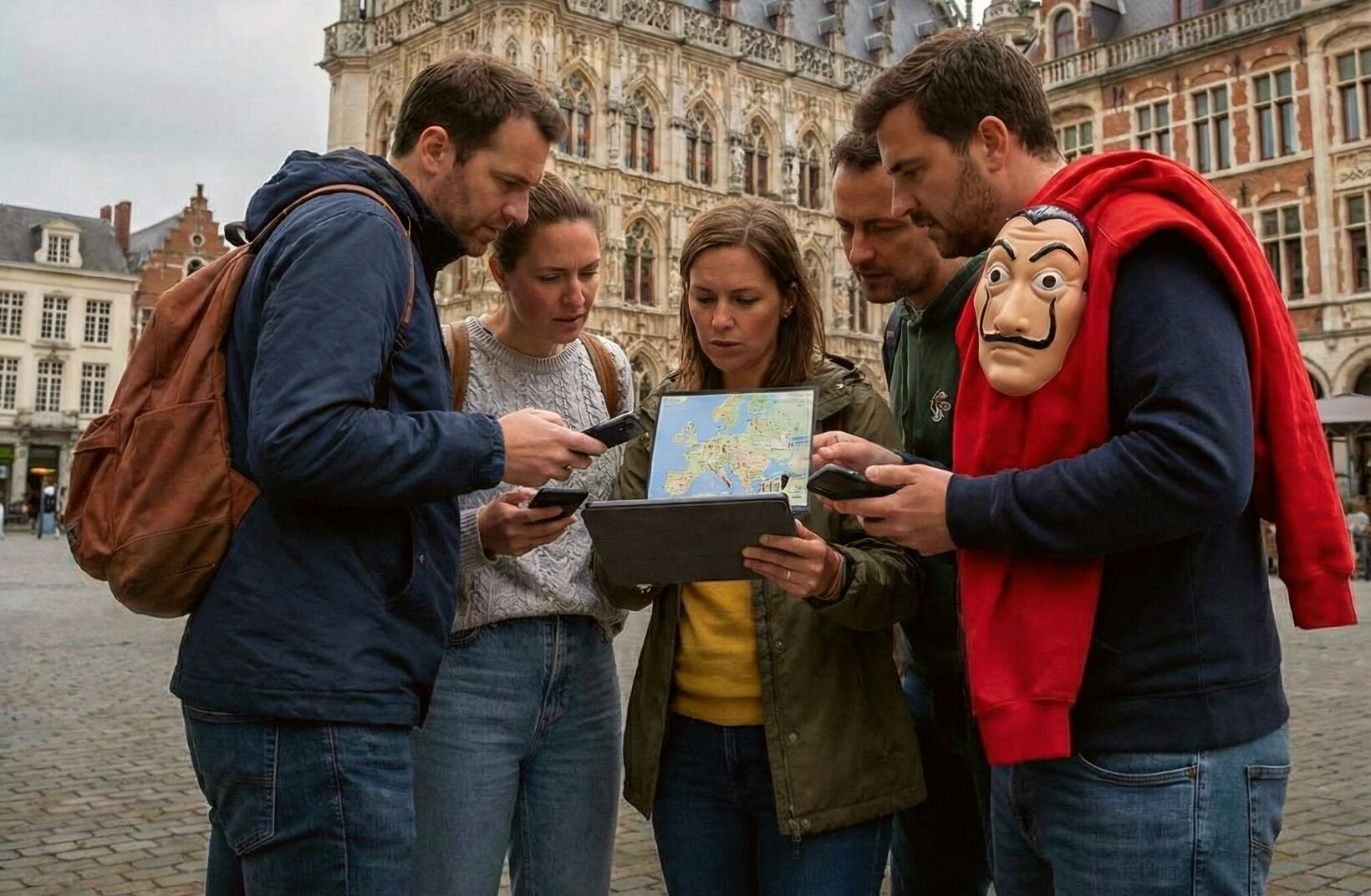 Seht euch nur die Konzentration dieses Teams vor dem ikonischen Rathaus von Leuven an! Sie sind nicht einfach nur Touristen, sondern verfolgen eine Mission. Bei dieser interaktiven Teambuilding-Übung von Geoteam verwandelt sich die Stadt in ein riesiges Spielfeld, auf dem hinter jeder Ecke ein Geheimnis lauert.