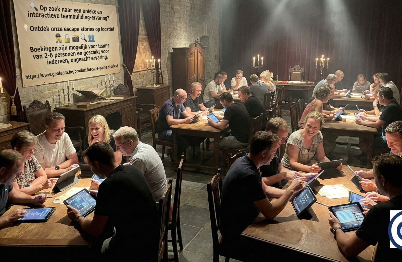 Onze Escape Game Stories brengen het beste van twee werelden samen: de tastbare sfeer van een prachtige locatie en de moderne interactiviteit van onze digitale tablets. Het resultaat? Een teambuilding die niet alleen leuk is, maar ook écht iets bijdraagt aan de groepsdynamiek.