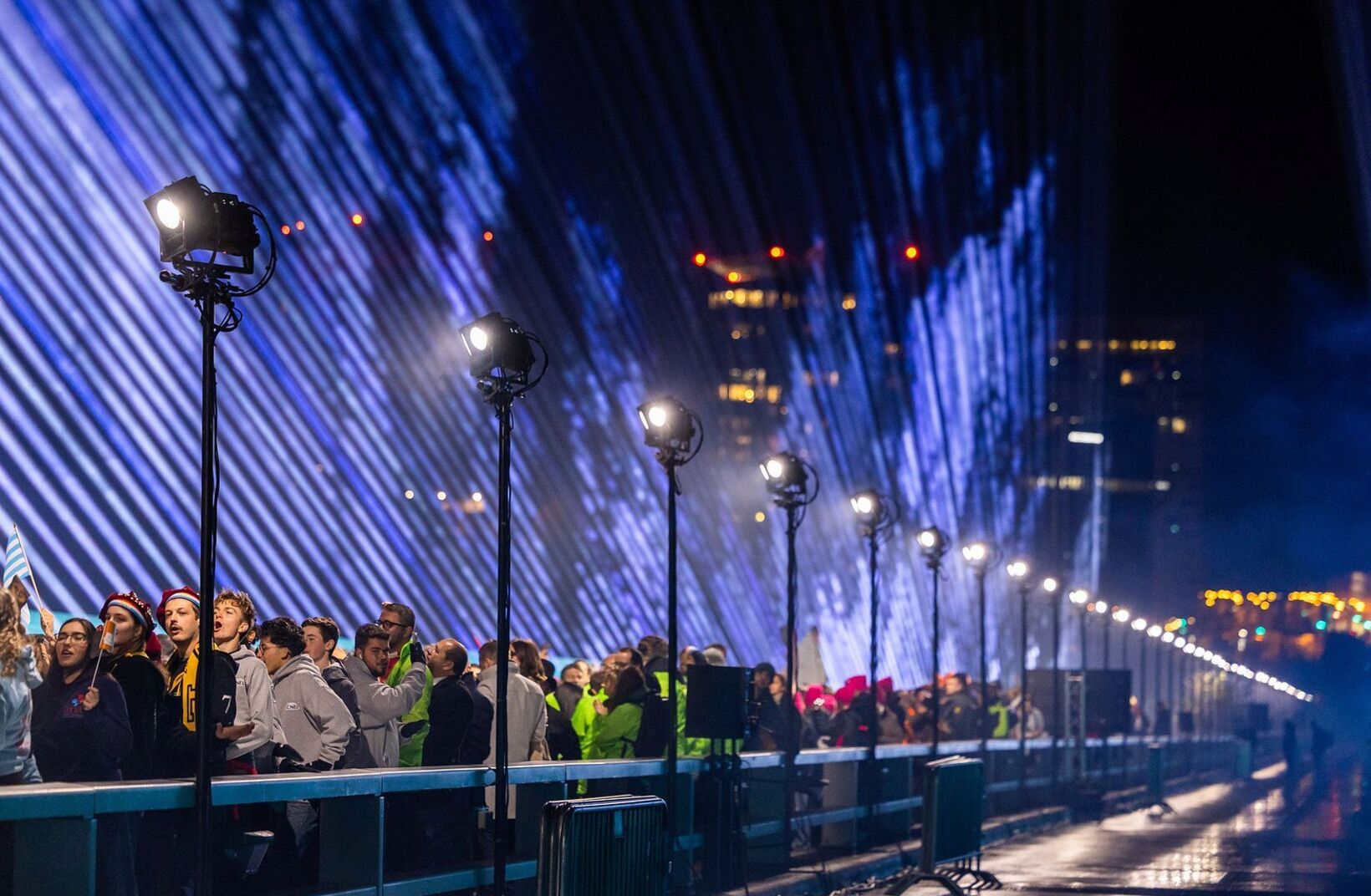 Eine spektakuläre Live-Übertragung mit nicht weniger als 2.000 Freiwilligen, die die Pont Rouge in Luxemburg-Stadt überquerten, wo die Bevölkerung Luxemburgs durch 8 fahrende Straßenbahnen präsentiert wurde – kraftvoll, einigend und auf dem Bildschirm zum Leben erweckt.