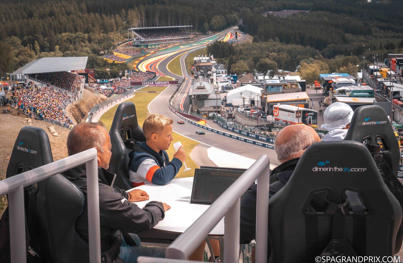 Während des Formel-1-Rennens in Spa-Francorchamps wurde das Erlebnis im wahrsten Sinne des Wortes auf ein neues Niveau gehoben. Mit „Dinner in the Sky 2.0“ schuf The Fungroup ein exklusives Erlebnis in schwindelerregender Höhe von 50 Metern, direkt an einer der schärfsten Kurven der legendären Rennstrecke.